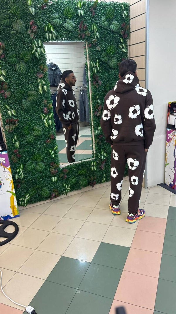 Bellissima tuta con i fiori felpata Color Moro dalla S alla Xl